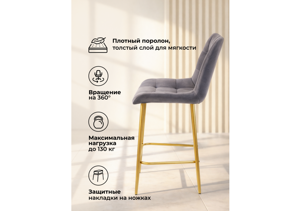 Барный стул поворотный Woodville Челси 360 темно-серый (zd 995) / золотой np 632553 в Воронеже