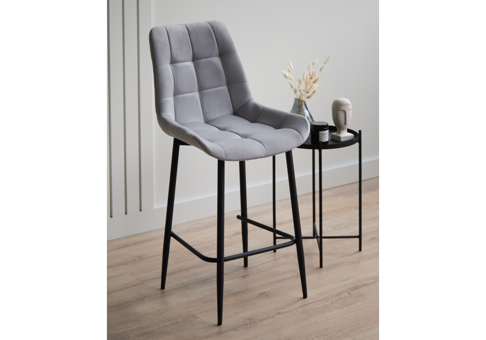 Материал каркаса - металл; Материал сиденья - велюр; Материал обивки - велюр; Цвет ножек - черный; Ширина - 50; Глубина - 58; Высота - 99; Ширина сиденья - 46; Глубина сиденья - 41; Высота сиденья - 63;