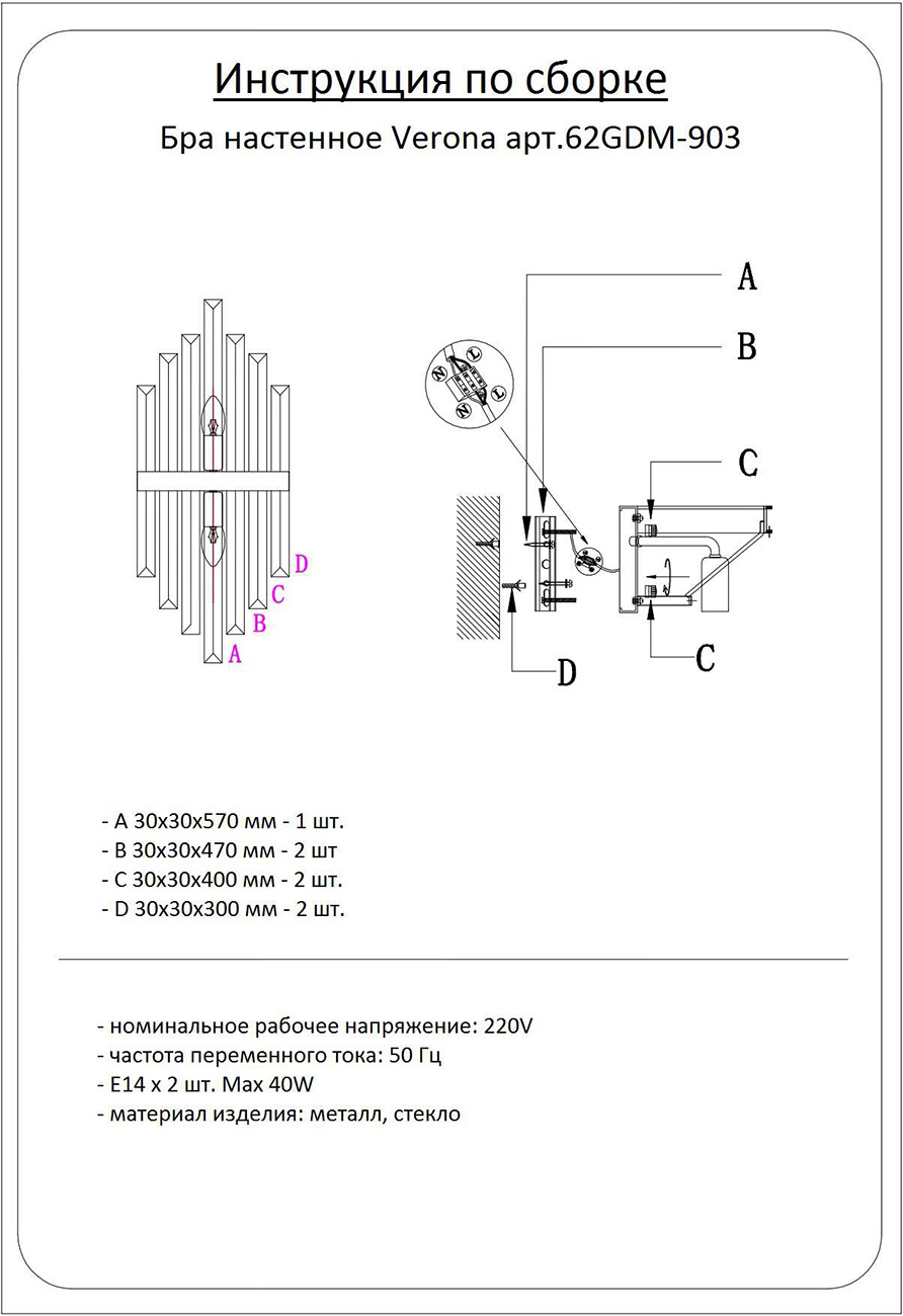Бра VERONA Garda Decor 62GDM-903 в Воронеже