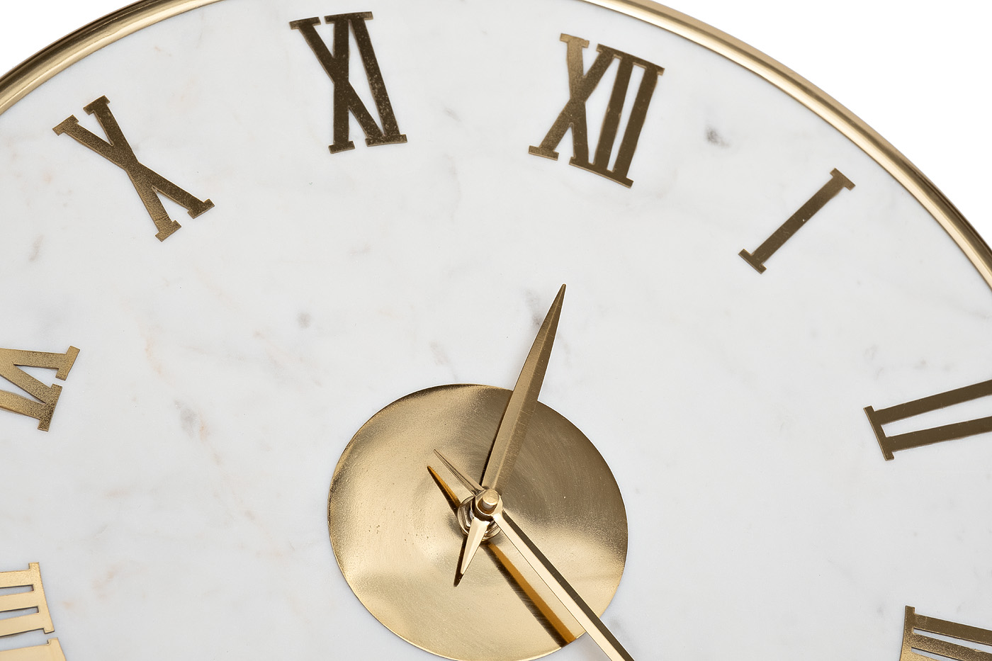 Круглые настенные часы из белого мрамора с золотым обрамлением станут стильным акцентом в интерьере гостиной, кабинета или столовой. Благородная фактура камня, лаконичный дизайн, римские цифры цвета золота создают ощущение роскоши и респектабельности. Час...