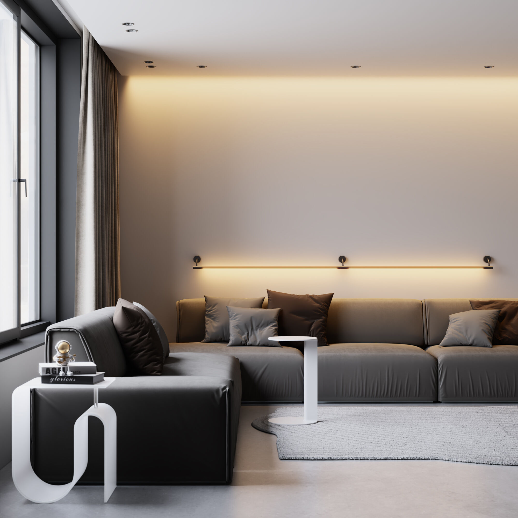 Module System подходит для готового ремонта благодаря накладному монтажу. Монтируется на декоративных гибких стойках и подвесах с возможностью регулирования высоты, к которым крепятся световые модули.