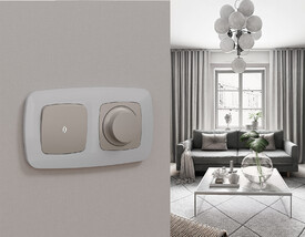 Проходной переключатель встраиваемый двухклавишный с подсветкой 10А Voltum S70 VLS020403 (кашемир)