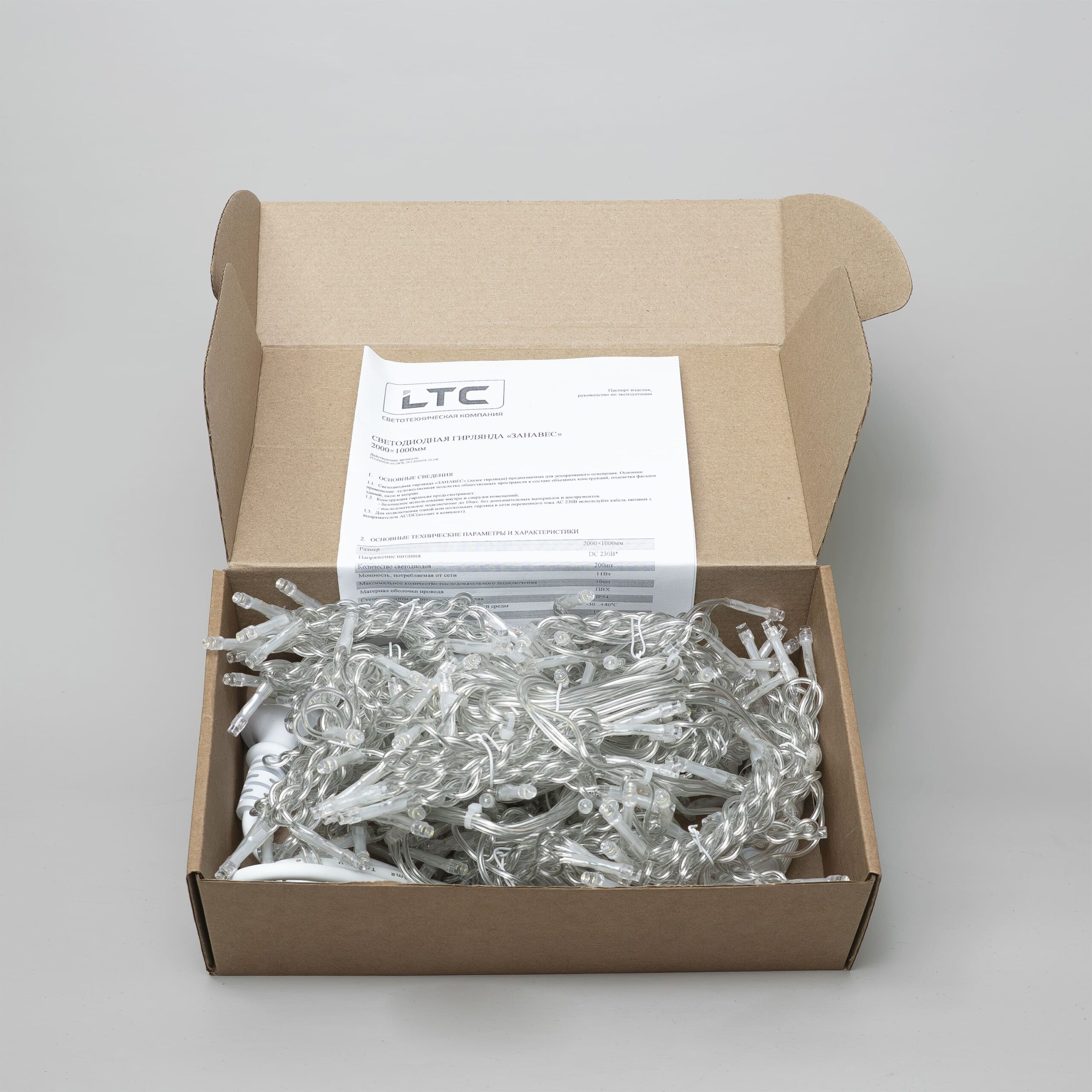 Гирлянда Занавес Облегченный 2 x 1 м Тепло-Белый 220В, 200 LED, Провод Прозрачный ПВХ, IP54 LTC PCL200NOT-10-2WW в Воронеже