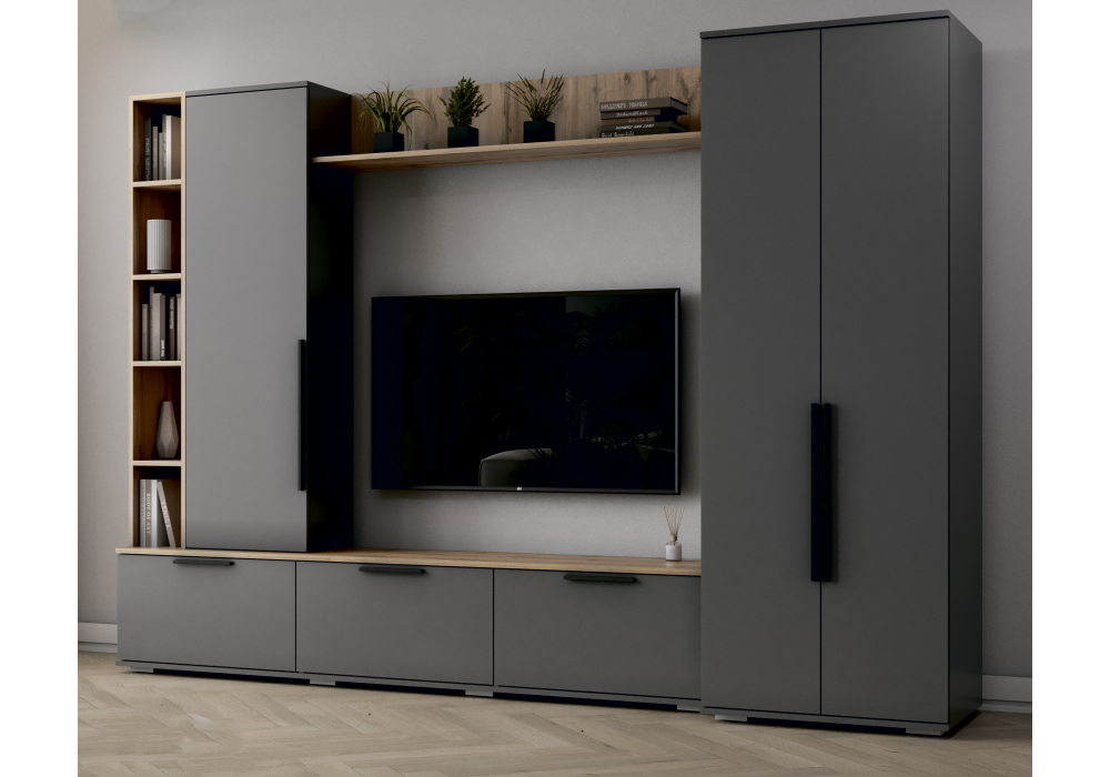 Купить "Готовая гостиная комплектация 1 Woodville Филеста графит / дуб вотан 664936"
