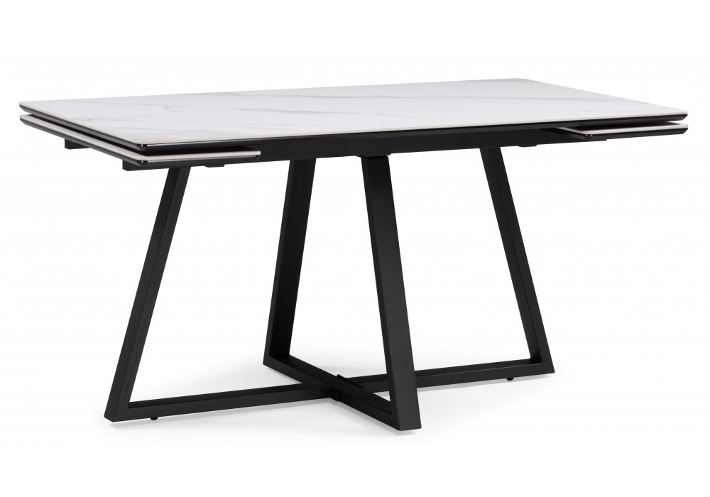 Купить "Керамический стол раскладной Woodville Памелла 140(200)х80 белый мрамор alpin white / черный 612903"