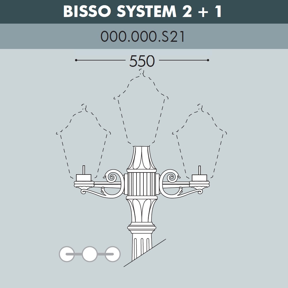 Консоль паркового фонаря на стену FUMAGALLI серии BISSO, модель BISSO SYS 2L+1. Классическая консоль на столб малого размера для трех парковых светильников малой и средней серии. Два садовых светильника расположены на кронштейнах по бокам и один по середине консоли, над парковой опорой. Посадочный диаметр для консоли(на столб) и светильников - 60 мм, фиксация с помощью стопорных винтов. Монтаж в положение "вверх". Дизайн классический, имитация чугунного литья или ковки. Изготовлена по технологии FUMATECH, с использованием материалов с разными физическими свойствами. В центре кронштейнов расположены стальные, оцинкованные с двух сторон трубки, (внутри проходят провода), которые придают им дополнительную прочность и жесткость. С внешней стороны используется сверхпрочный технологичный полимерный материал RESIN, который защищает поверхность от агрессивного воздействия всех атмосферных факторов (покрытие не ржавеет, не выгорает на солнце, не боится солей и реагентов). Не проводит электричество!!! Кронштейн и светильники на ней не требуют заземления и относятся к 2 классу электробезопасности. Срок службы - не менее 20 лет. Температура эксплуатации от -60 до +90. Для установки парковых фонарей FUMAGALLI на стену можно использовать консоли BISSO WALL (стена).