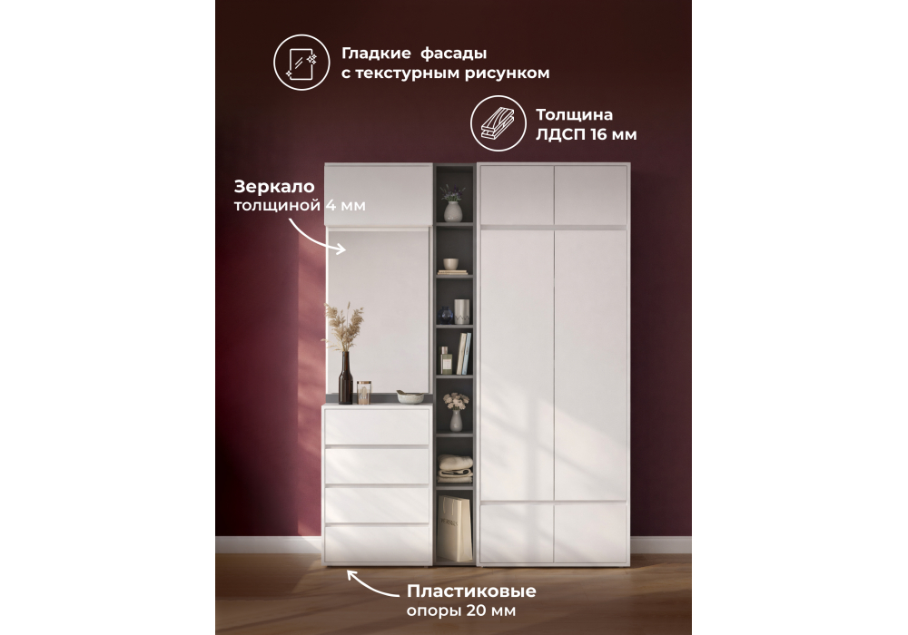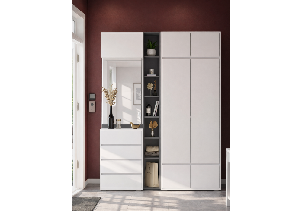 Купить "Модульная прихожая комплектация 4 Woodville Роут белый / графит 620675"