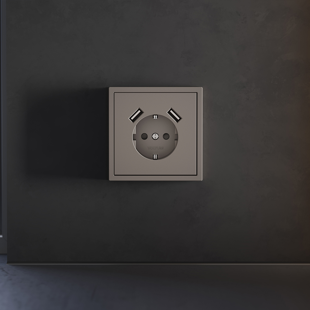 Купить "Накладка для розетки с заземлением и защитными шторками, с USB A+A Voltum S70 VLS000914 (капучино)"