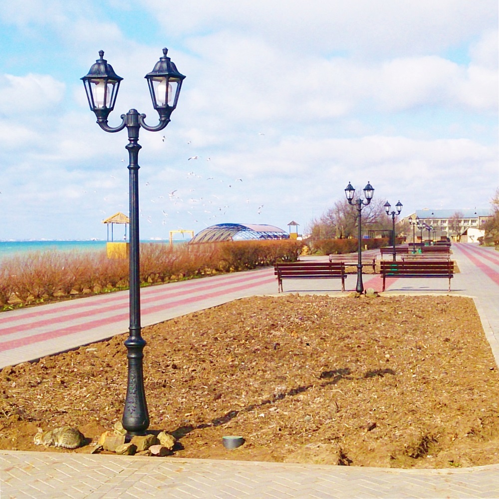 Парковый фонарь FUMAGALLI большого размера серии NOEMI, модель NEBO OFIR/NOEMI 2L. Парковый фонарь с 2 светильниками большого размера, на консолях OFIR среднего размера, установленных на классическом столбе NEBO высотой 2,5 м (+высота фонарей на кронштейнах). Изготовлены в Италии, по уникальным технологиям "FUMATECH" из современного композитного полимера RESIN. Этот материал в 5 раз прочнее металла, не ржавеет, не окисляется, не выгорает на солнце, его не нужно красить. Все светильники пыле-влаго защищены по стандарту IP55 (Пылезащищенные, защита от водяных струй с любого направления). Рассеиватель выполнен из антивандального, не мутнеющего и не горючего PMMA (ПолиМетилМетаАкрилат). Срок службы светильника - не менее 20 лет. Температура использования от -60 до +90. В серии NOEMI есть садовые фонари в настенном (OFIR/NOEMI, MIRRA/NOEMI) подвесном (SICHEM/NOEMI) и наземном исполнении (IAFAET.R/NOEMI, ALOE.R/NOEMI, ARTU/NOEMI, GIGI/NOEMI, RICU/NOEMI, NEBO/OFIR/NOEMI 1L, NEBO/OFIR/NOEMI 2L, TABOR/ADAM/NOEMI 3L) со столбами разной высоты, с разным количеством и конфигурацией голов. Консоли настенных фонарей и кронштейны светильников на столбах освещения могут устанавливаться в положение вверх и вниз. Столбы выше 150 см имеют в основе мощную стальную трубу с двойной оцинковкой. При заказе требуется выбрать цвет корпуса, цвет плафона и тип патрона (Е-27 или LED GX-53). Возможен светодиодный вариант. По стилю и дизайну серия уличных светильников NOEMI похожа на светильники среднего размера серии RUT и на светильники малого размера серии ANNA. По размеру относится к большим парковым светильникам как серия SIMON и GLOBE 400.