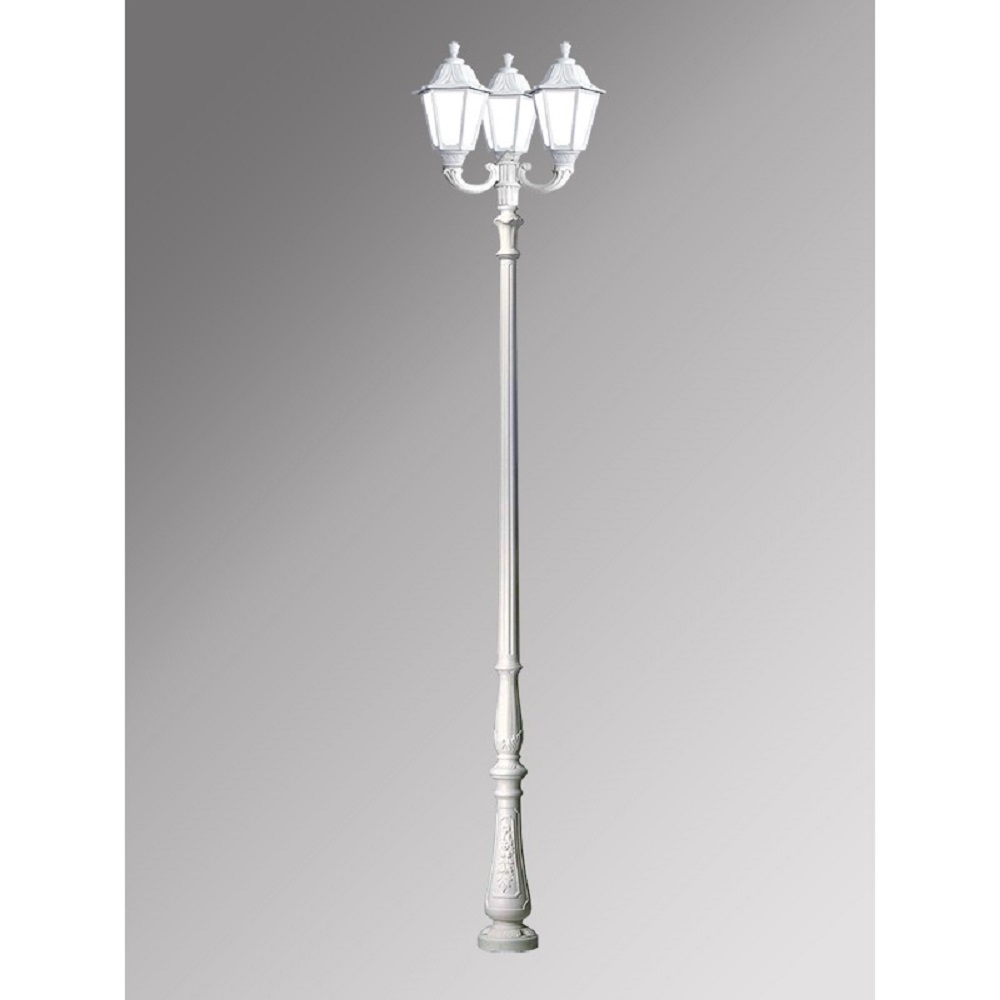Парковый фонарь FUMAGALLI большого размера серии GLOBE 400, модель TABOR OFIR/GLOBE 400 3L. Парковый фонарь с 3 светильниками большого размера, на консолях OFIR среднего размера, установленных на классическом столбе TABOR высотой 3,0 м (+высота фонарей на кронштейнах). Изготовлены в Италии, по уникальным технологиям "FUMATECH" из современного композитного полимера RESIN. Этот материал в 5 раз прочнее металла, не ржавеет, не окисляется, не выгорает на солнце, его не нужно красить. Все светильники пыле-влаго защищены по стандарту IP55 (Пылезащищенные, защита от водяных струй с любого направления). Рассеиватель выполнен из антивандального, не мутнеющего и не горючего PMMA (ПолиМетилМетаАкрилат). Срок службы светильника - не менее 20 лет. Температура использования от -60 до +90. В серии NOEMI есть садовые фонари в настенном (OFIR/NOEMI, MIRRA/NOEMI) подвесном (SICHEM/NOEMI) и наземном исполнении (IAFAET.R/NOEMI, ALOE.R/NOEMI, ARTU/NOEMI, GIGI/NOEMI, RICU/NOEMI, NEBO/OFIR/NOEMI 1L, NEBO/OFIR/NOEMI 2L, TABOR/ADAM/NOEMI 3L) со столбами разной высоты, с разным количеством и конфигурацией голов. Консоли настенных фонарей и кронштейны светильников на столбах освещения могут устанавливаться в положение вверх и вниз. Столбы выше 150 см имеют в основе мощную стальную трубу с двойной оцинковкой. При заказе требуется выбрать цвет корпуса, цвет плафона и тип патрона (Е-27 или LED GX-53). Возможен светодиодный вариант. По стилю и дизайну серия уличных светильников NOEMI похожа на светильники среднего размера серии RUT и на светильники малого размера серии ANNA. По размеру относится к большим парковым светильникам как серия SIMON и GLOBE 400.