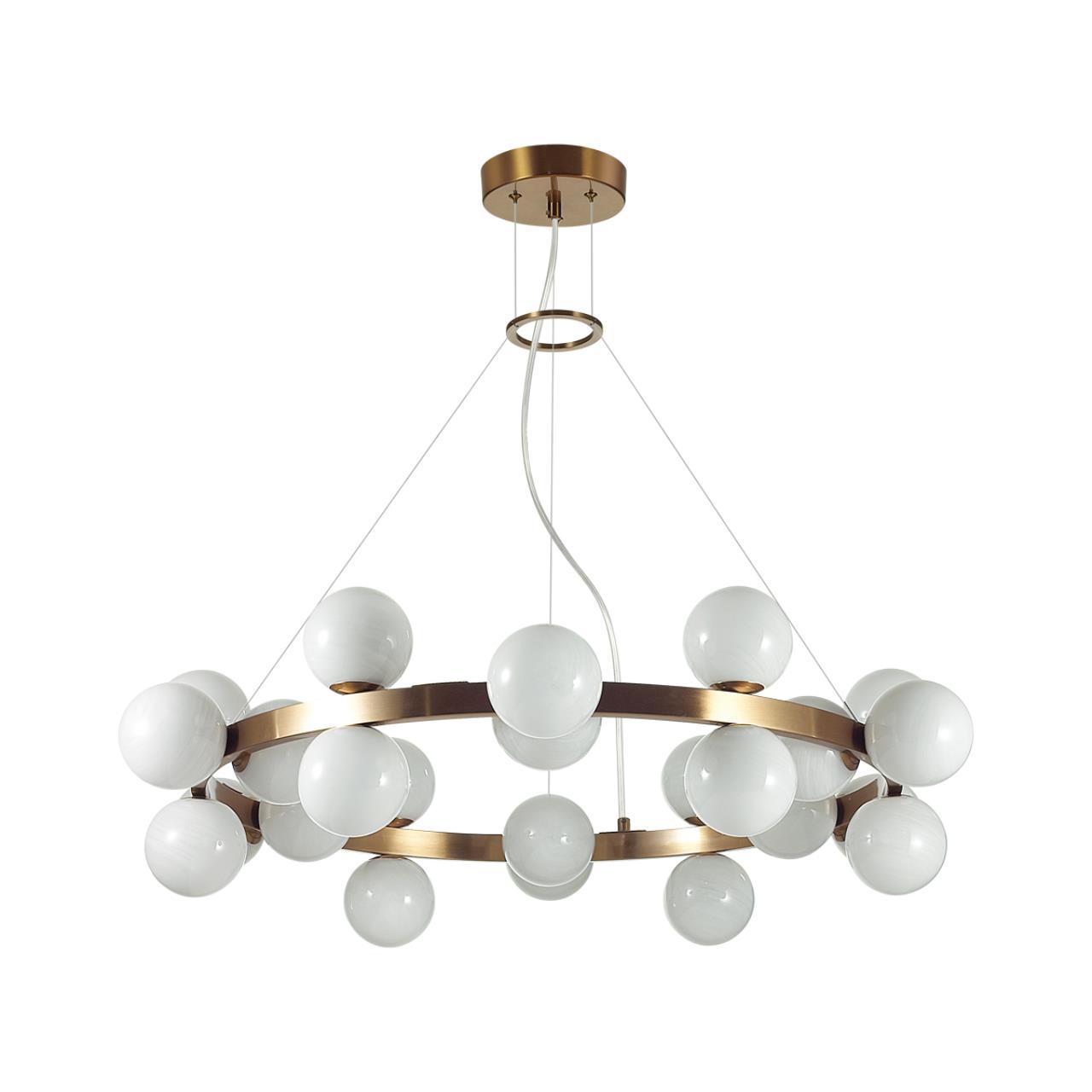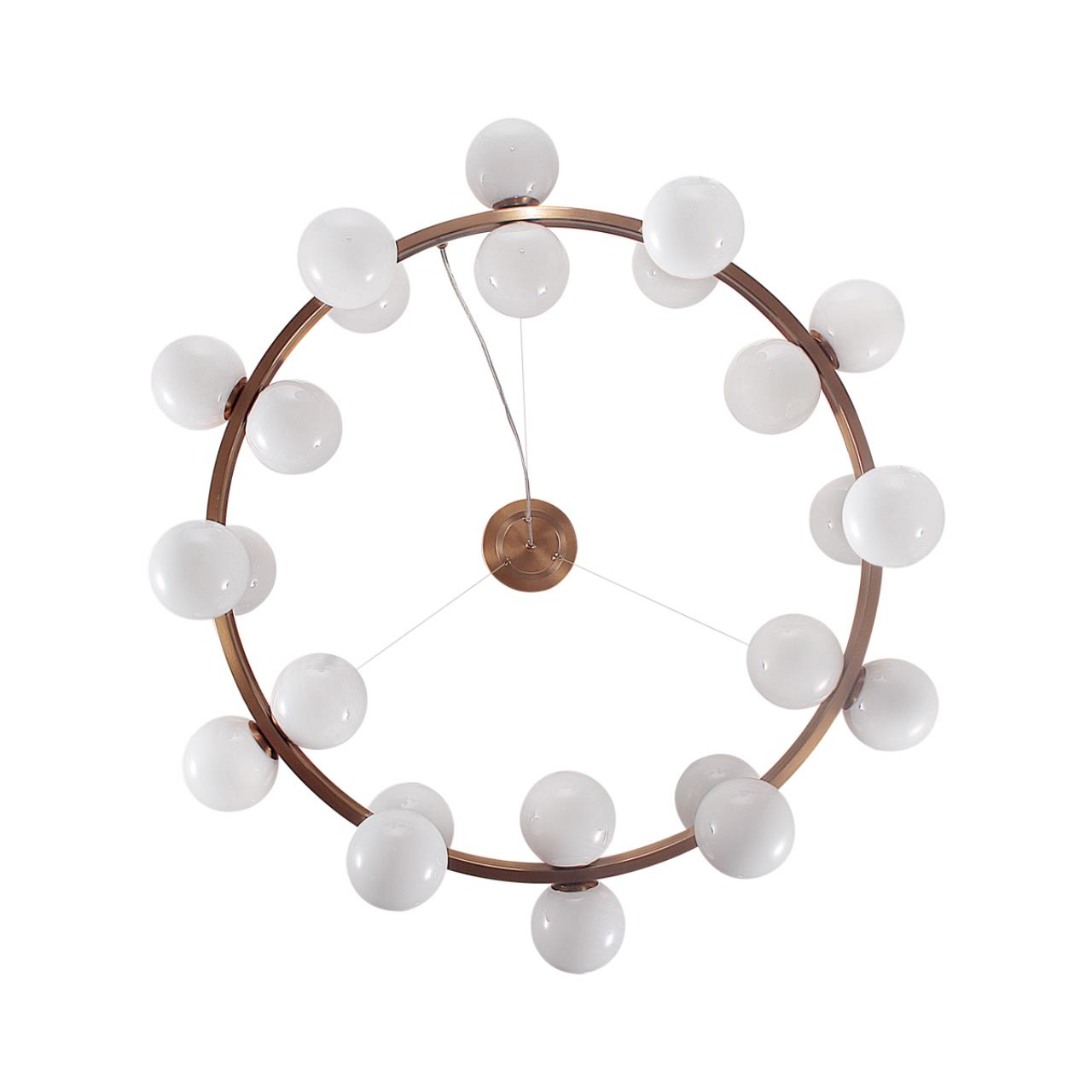 Образ шаров в линии Magia создает воздушную атмосферу. Белое глянцевое молочное стекло выполнено с эффектом облачного узора, прида ет визаульное сходство светильнику с алебастром.