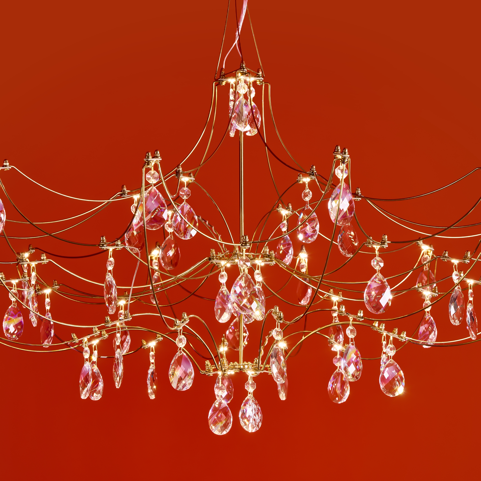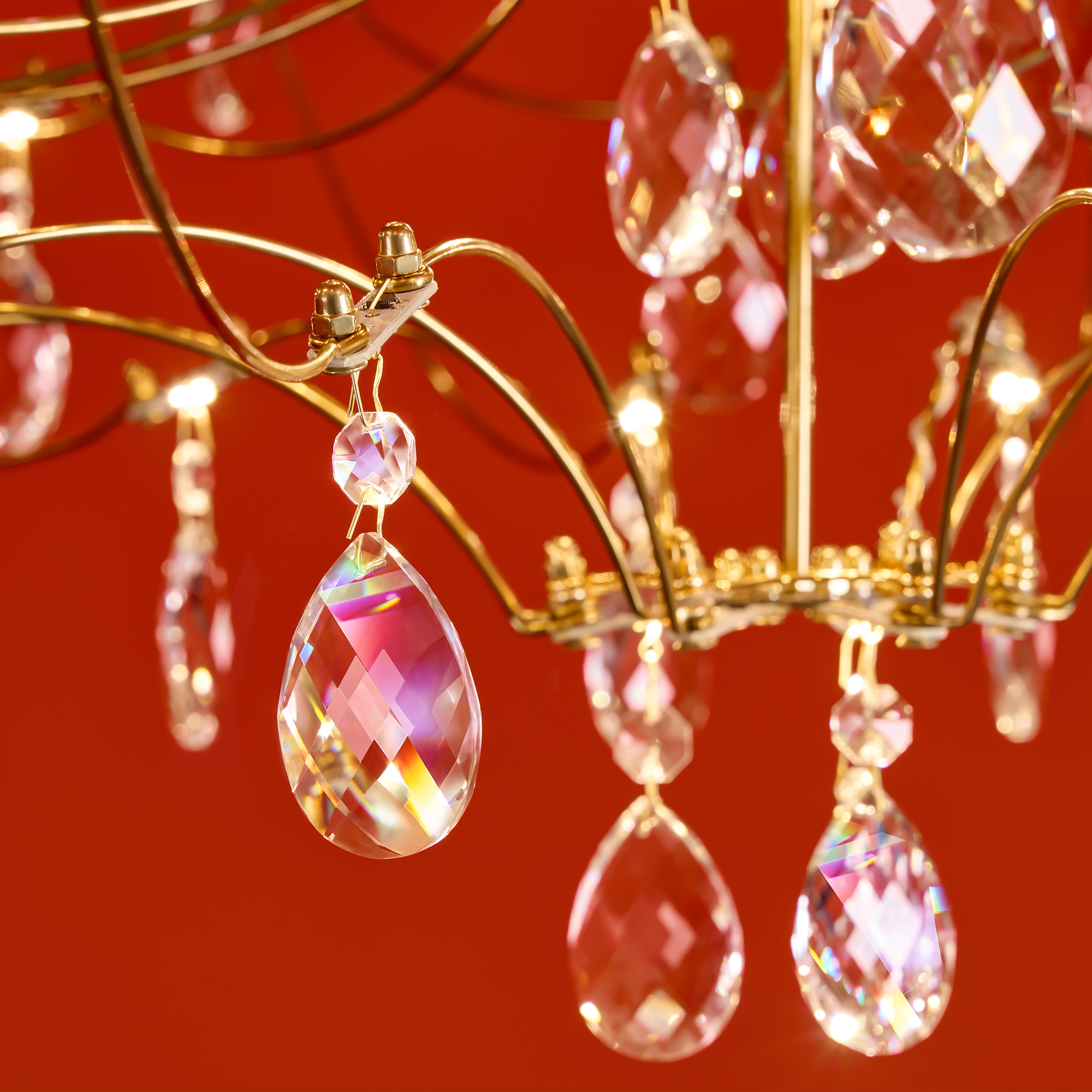 Арматура - хромированная нержавеющая сталь. В соединениях арматуры Led источник света и декоративные элементы из хрусталя в виде капелек. Цветовая температура 3000К.