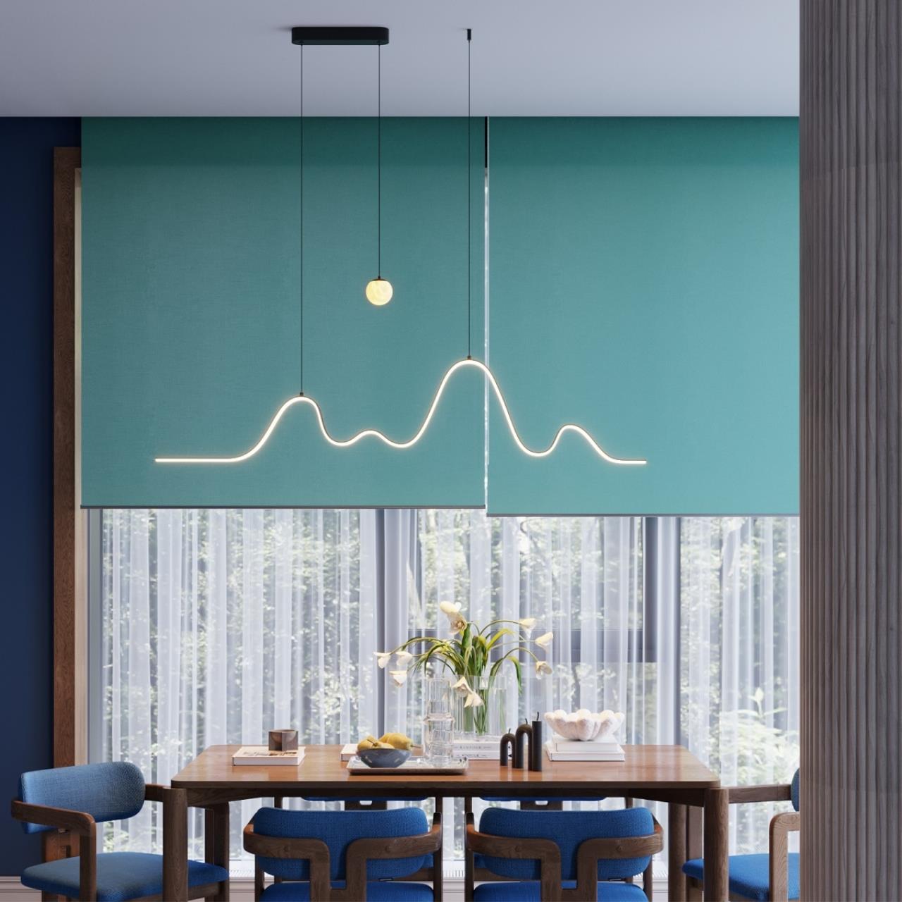 Светильник Moonlight похож на силуэт горы, словно подсвеченный лунным светом от шара из настоящего алебастра. Волнистая линия с Led источником света 3000K дает свет вниз, светильник может использоваться над островом или вытянутым пространством. Подвес-шар из настоящего алебастра может включаться отдельно при помощи настенного выключателя, таким образом светильник обеспечивает как более яркий свет для обеденной зоны, так и более камерный.