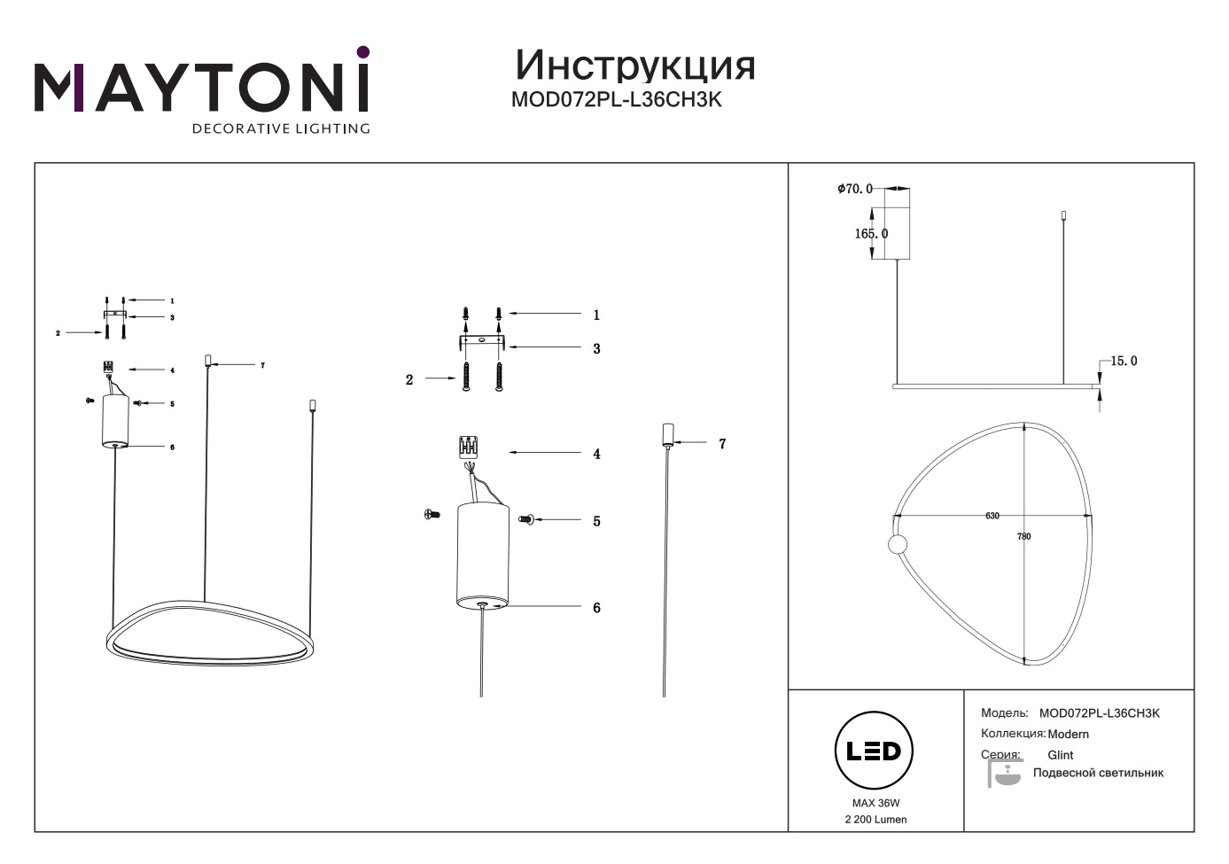 Подвесной светодиодный светильник Glint MOD072PL-L36CH3K от известного немецкого производителя Maytoni — идеальное сочетание современного стиля и элегантности. Эта модель станет ярким акцентом в вашем интерьере и создаст неповторимую атмосферу уюта и тепла.