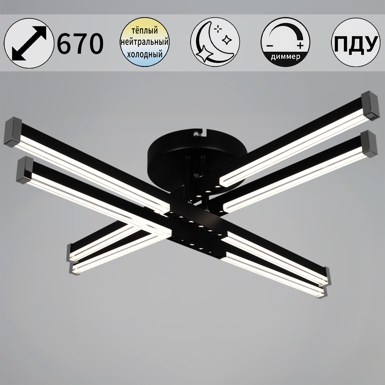 - Технические особенности: С пультом ДУ, С диммером