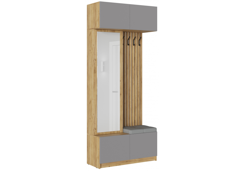 Купить "Прихожая Woodville Хадали дуб крафт золотой / серый шифер / кожзам ecotex 3022 / arena 007 серый 580251"