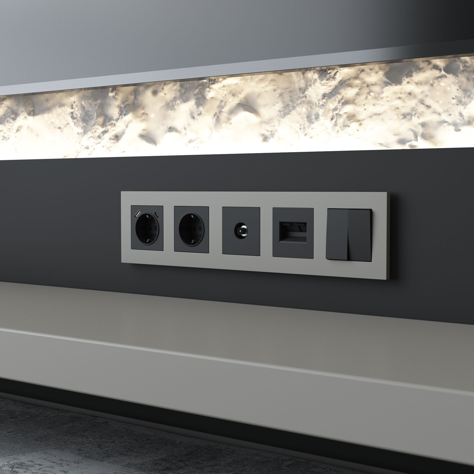 Slab — рамки из матового поликарбоната, современное и элегантное решениедля вашего интерьера. Матовая фактура приятно считывается и обладает тактильной мягкостью. В любом современном дизайне рамки обозначат себя как важный составной элемент, дополняющий предметы мебели и стилистику помещения.Серия Slab представлена моделями от одного до пяти постов. Рамки предназначены как для горизонтального, так и для вертикального монтажа. Коллекция совместима с любыми встраиваемыми механизмами Werkel.Быстрый и удобный монтаж — еще одно преимущество рамок. С установкой справится даже начинающий электрик, а при желании монтаж можно произвести и самостоятельно: достаточно следовать приложенной инструкции.Рамки изготовлены из негорючего ударопрочного поликарбоната.