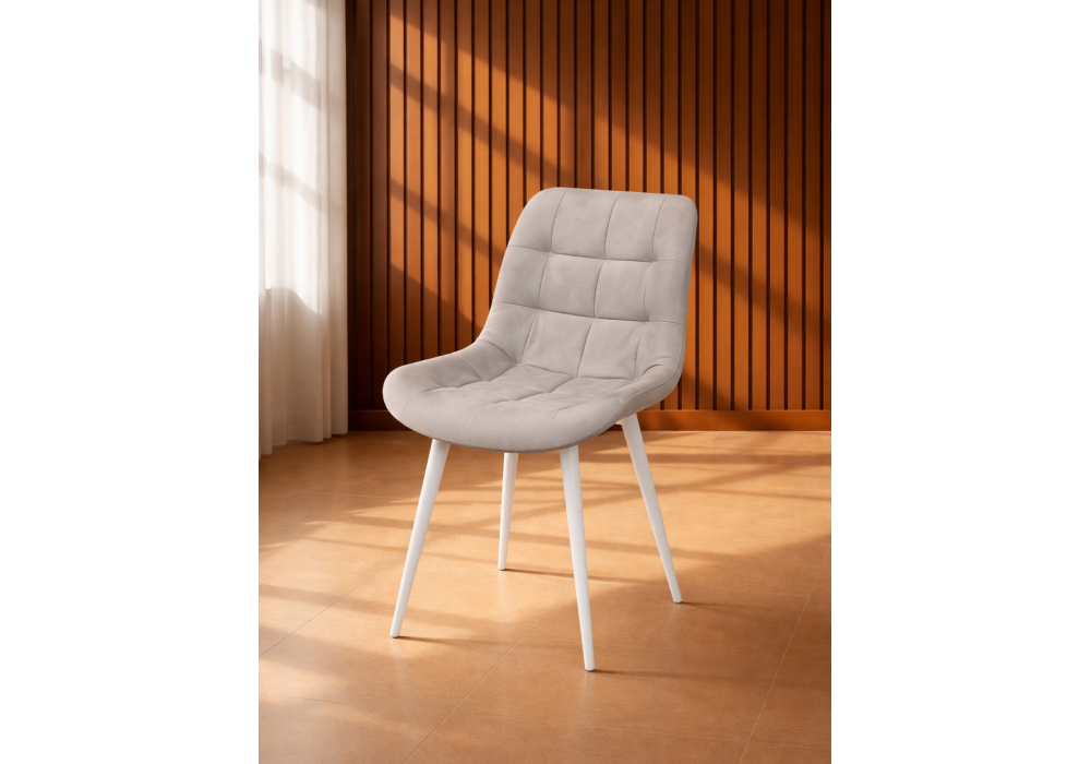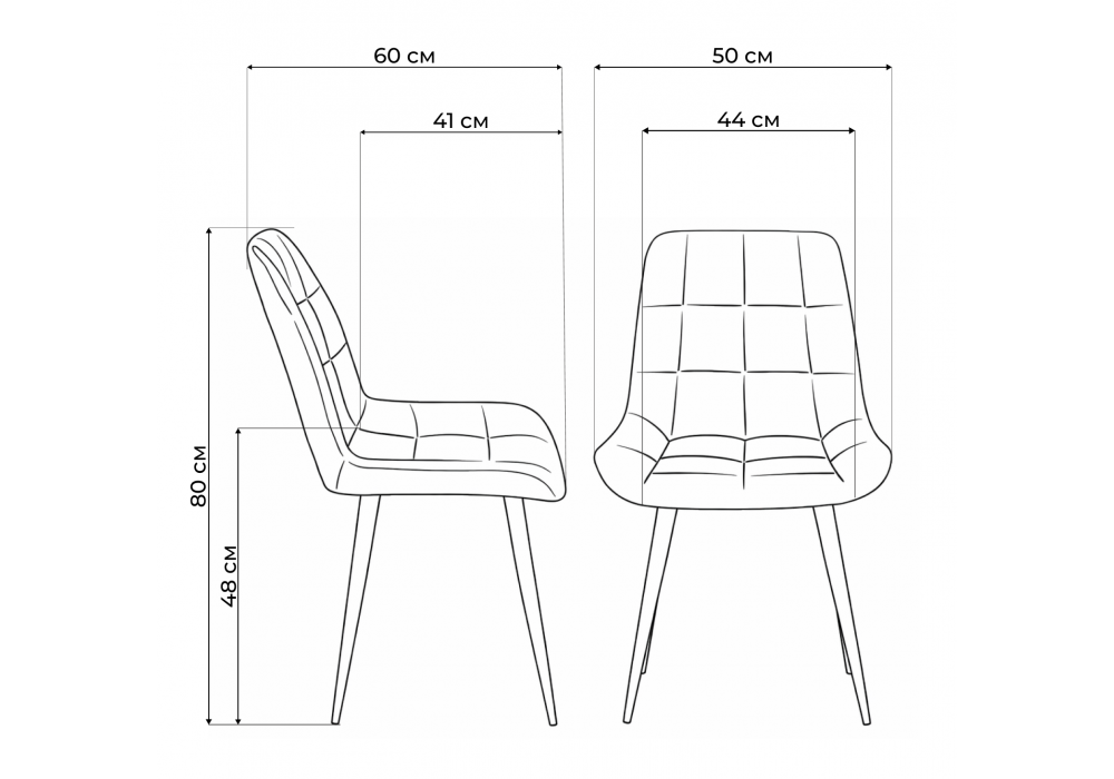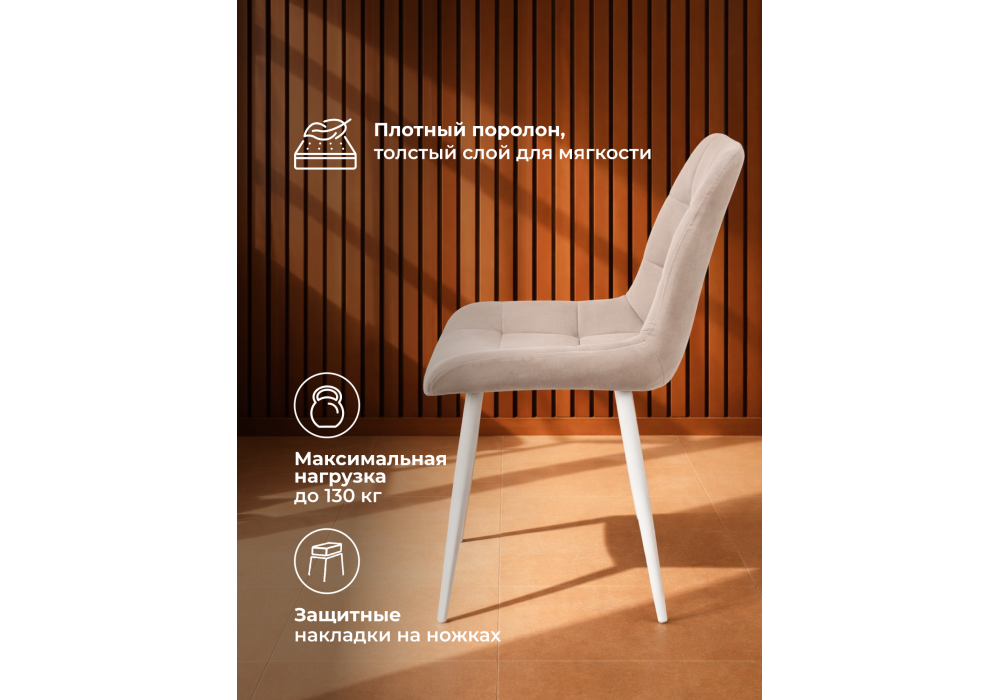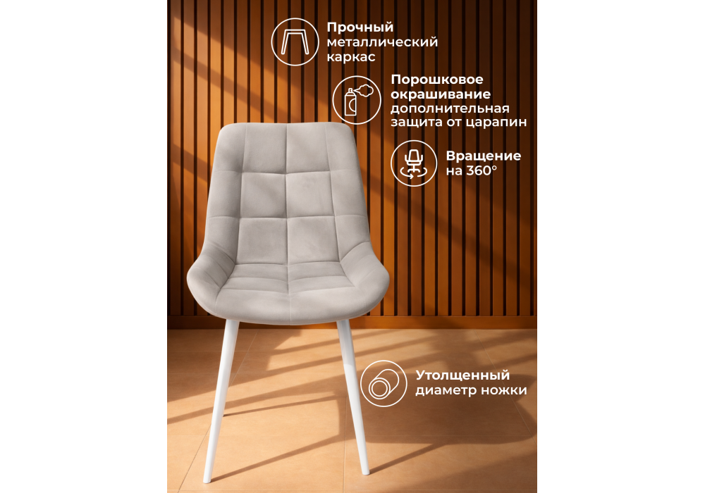 Материал каркаса - металл; Материал сиденья - велюр; Материал обивки - велюр; Цвет ножек - белый; Ширина - 50; Глубина - 60; Высота - 80; Ширина сиденья - 44; Глубина сиденья - 41; Высота сиденья - 48;