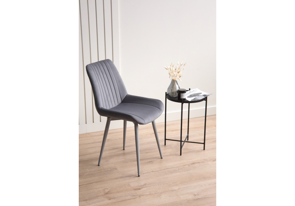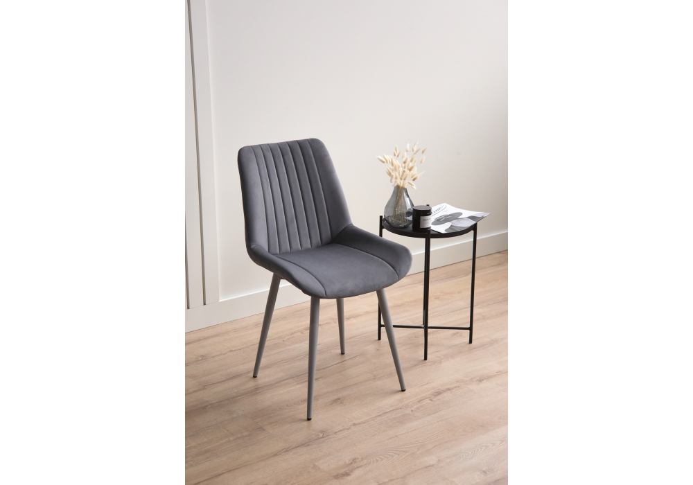 Материал каркаса - металл; Материал сиденья - велюр; Материал обивки - велюр; Цвет ножек - серый; Ширина - 50; Глубина - 56; Высота - 82; Ширина сиденья - 47; Глубина сиденья - 42; Высота сиденья - 48;