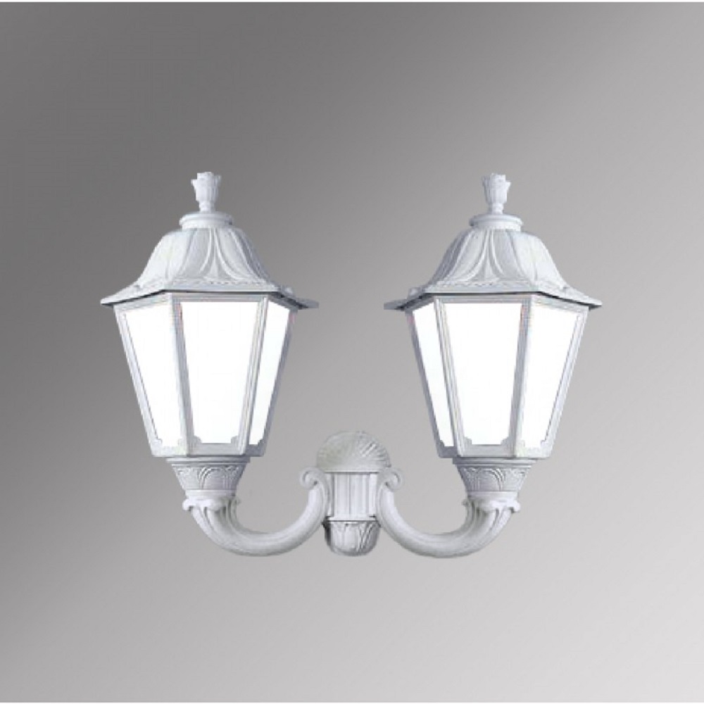 Светильник уличный настенный FUMAGALLI большого размера серии NOEMI, модель MIRRA/NOEMI. Двойной настенный уличный фонарь, большого размера с креплением на стену с помощью 2 консолей OFIR среднего размера. Устанавливается на стены домов, котеджей, заборов и других вертикальных поверхностей. Используется для освещения входных групп, общего уличного освещения, декоративной и фасадной подсветки. Изготовлены в Италии, по уникальным технологиям "FUMATECH" из современного композитного полимера RESIN. Этот материал в 5 раз прочнее металла, не ржавеет, не окисляется, не выгорает на солнце, его не нужно красить. Все светильники пыле-влаго защищены по стандарту IP55 (Пылезащищенные, защита от водяных струй с любого направления). Рассеиватель выполнен из антивандального, не мутнеющего и не горючего PMMA (ПолиМетилМетаАкрилат). Срок службы светильника - не менее 20 лет. Температура использования от -60 до +90. В серии NOEMI есть садовые фонари в настенном (OFIR/NOEMI, MIRRA/NOEMI) подвесном (SICHEM/NOEMI) и наземном исполнении (IAFAET.R/NOEMI, ALOE.R/NOEMI, ARTU/NOEMI, GIGI/NOEMI, RICU/NOEMI, NEBO/OFIR/NOEMI 1L, NEBO/OFIR/NOEMI 2L, TABOR/ADAM/NOEMI 3L) со столбами разной высоты, с разным количеством и конфигурацией голов. Консоли настенных фонарей и кронштейны светильников на столбах освещения могут устанавливаться в положение вверх и вниз. Столбы выше 150 см имеют в основе мощную стальную трубу с двойной оцинковкой. При заказе требуется выбрать цвет корпуса, цвет плафона и тип патрона (Е-27 или LED GX-53). Возможен светодиодный вариант. По стилю и дизайну серия уличных светильников NOEMI похожа на светильники среднего размера серии RUT и на светильники малого размера серии ANNA. По размеру относится к большим парковым светильникам как серия SIMON и GLOBE 400.