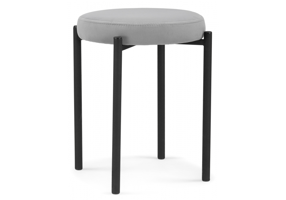 Материал каркаса - Металл; Материал сиденья - Велюр; Материал ножек - Металл; Материал обивки - Велюр; Цвет каркаса - Черный; Цвет сиденья - Серый; Цвет ножек - Черный; Цвет обивки - Серый; Ширина - 40; Глубина - 40; Высота - 46; Ширина сиденья - 35; Глубина сиденья - 35; Высота сиденья - 46