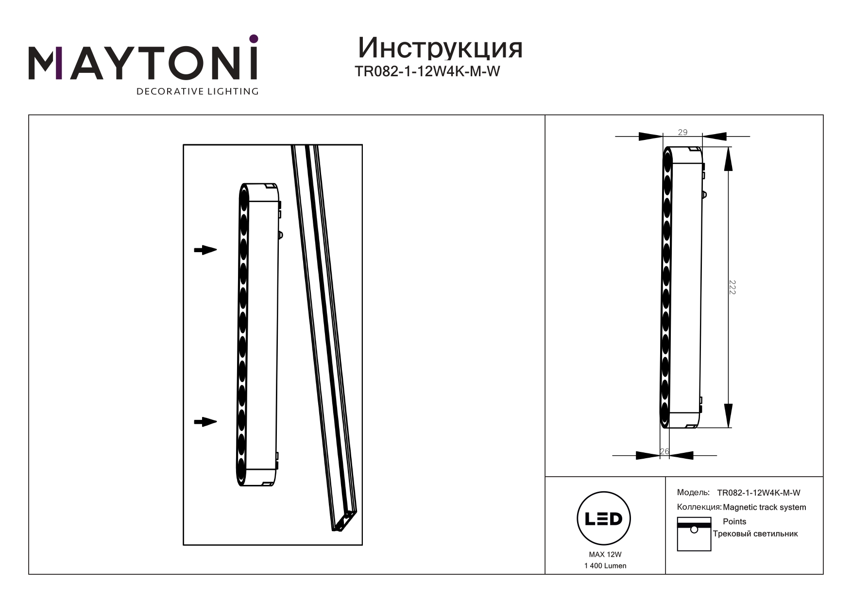 Все характеристики TR082-1-12W4K-M-W
