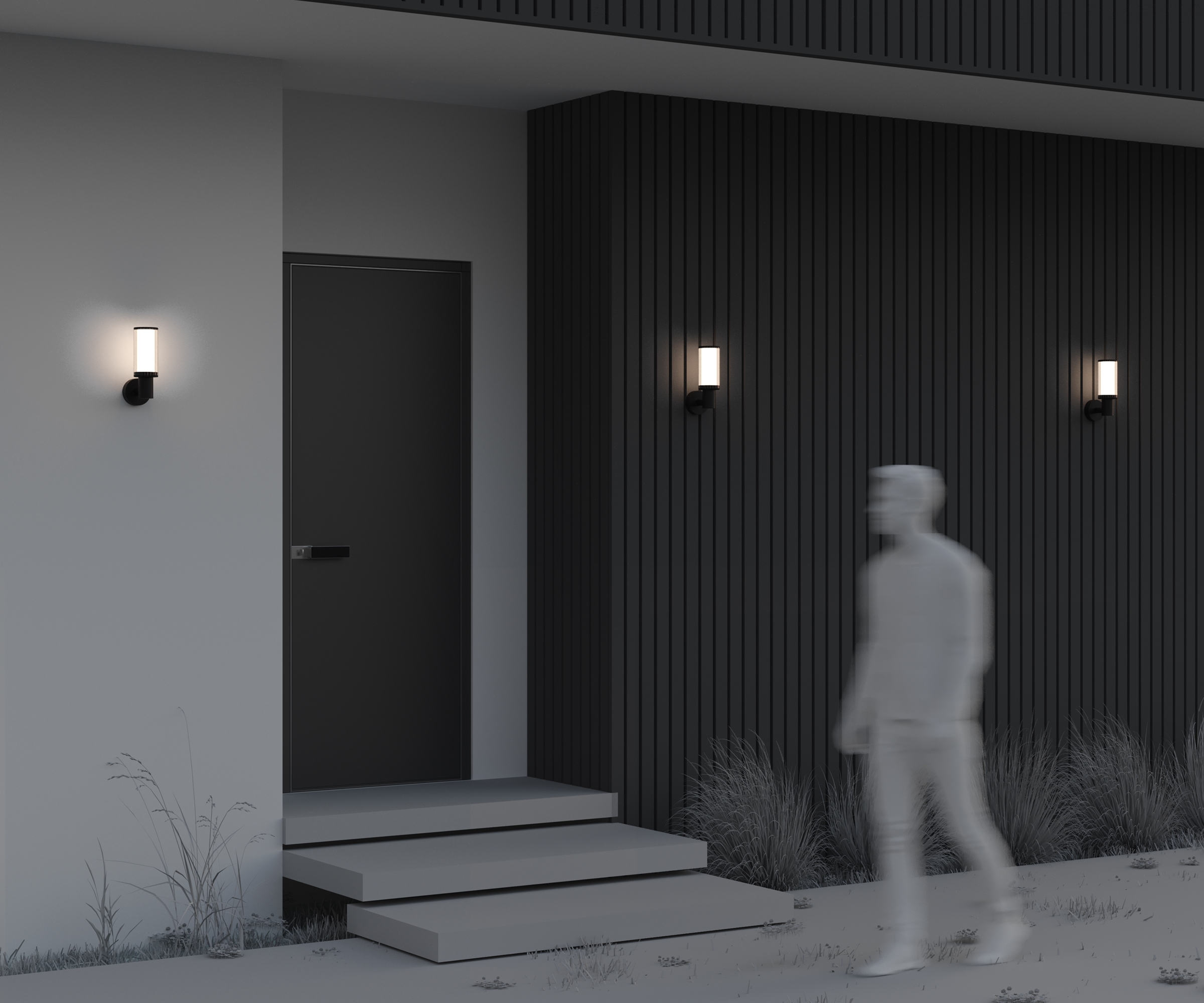 Материал арматуры - алюминий, цвет - черный. Плафон из пластика. Источник света - лампа с цоколем E27, мощность 23Вт. Высота 800 мм. Настенный и ландшафтные светильники для уличного использования.